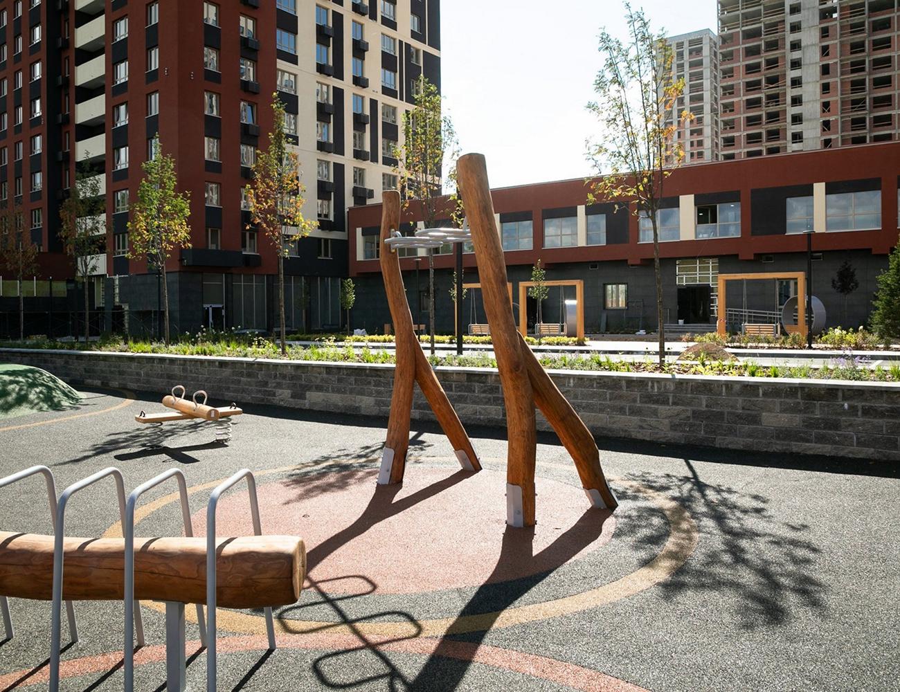 Комплекс окружен современными детскими площадками с безопасными игровыми элементами, спортивными зонами для занятий спортом на свежем воздухе и зонами отдыха для взрослых. Вблизи также расположен пешеходные бульвар для прогулок или пробежек.
