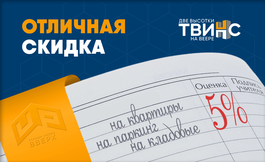 Мы объявили скидку 5% на ВСЁ! Квартиры, места в паркинге, кладовые-келлеры – все это в июле и августе можно купить со скидкой 5% при полной оплате. И необязательно наличными, в т.ч. и при покупке в ипотеку (а ипотека у нас, напомним, без удорожания).